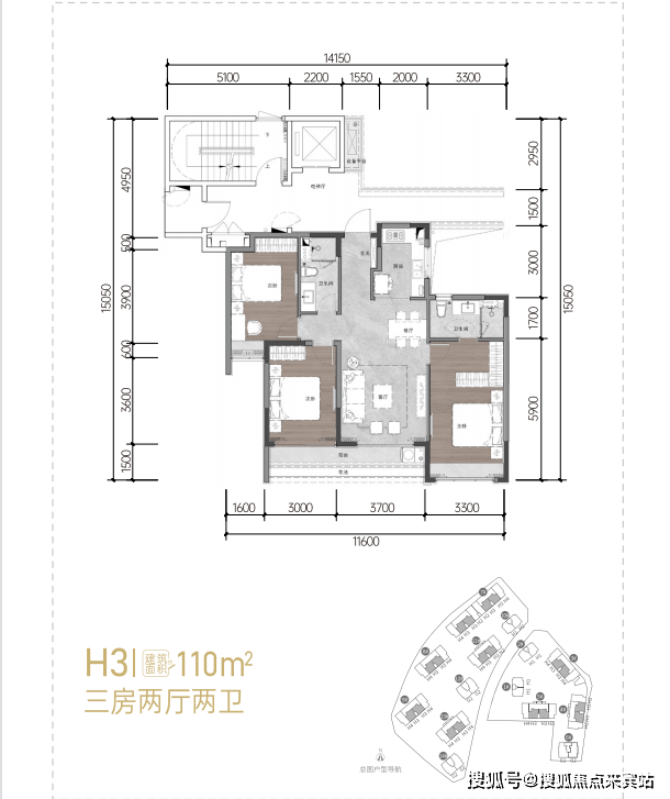 108㎡:三房两厅两卫