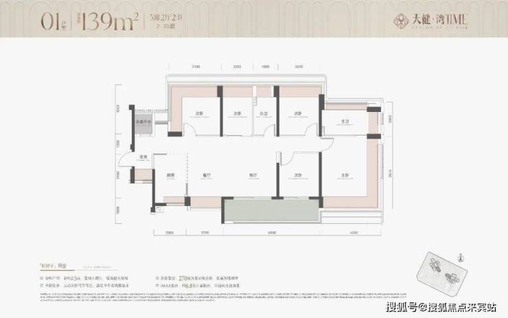 并且,该户型还是三面飘窗环绕,360°采光通风,尺度阔绰的主卧套房及其中一个次卧,还带有270°大尺度环绕飘窗。