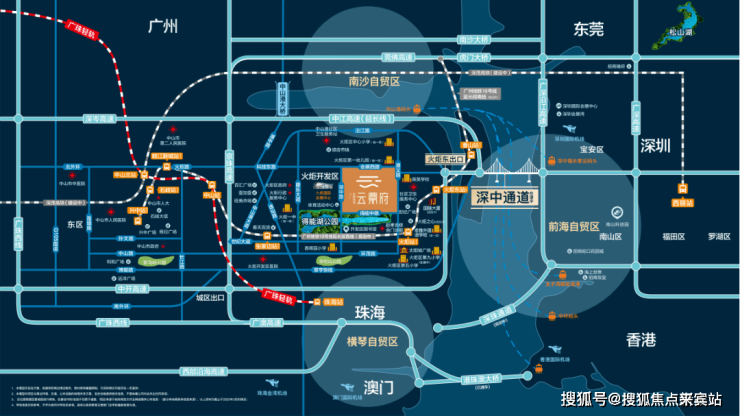 摊开俯瞰,以云鼎府为中心,约6KM即达深中通道火炬东出口(规划中),一桥直达深圳前海;约400米直达广州地铁18号线(南中城际)火炬站(建设中),高效畅享湾区1小时生活圈;