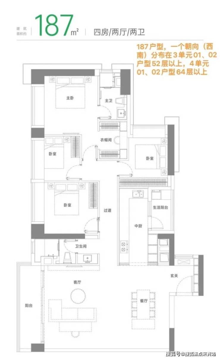 梯户比:1-3/1-4栋低区4T7,高区3T6;1-5栋高低都是3T6(PS:48F以上为高区)