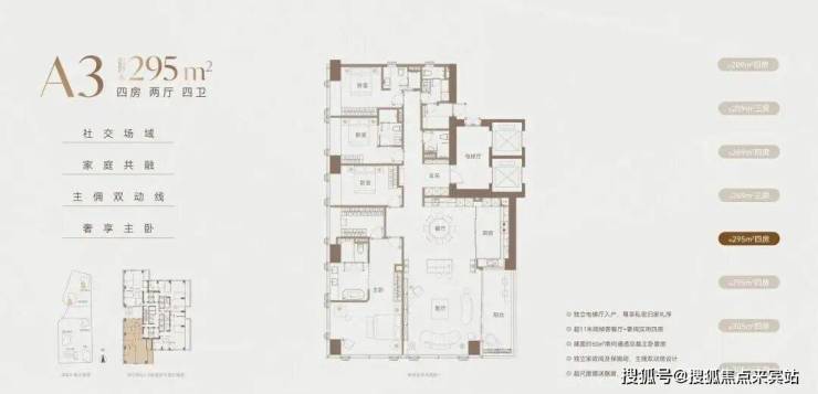 ②高区42F起(150-200米)是约370-375-403㎡4+1房五卫+家庭厅+家政套间;
