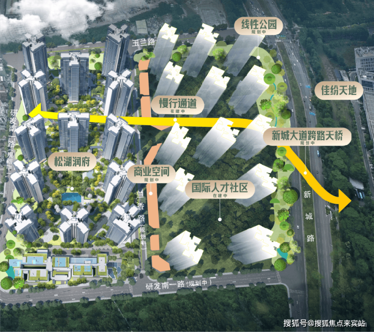 惊喜远不止于此。社区内打造慢行通道,串联人才社区、佳纷天地与松湖烟雨,咫尺即达繁华商业。