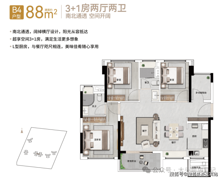 【88㎡3+1房2厅2卫(带主套)】总价450-550万