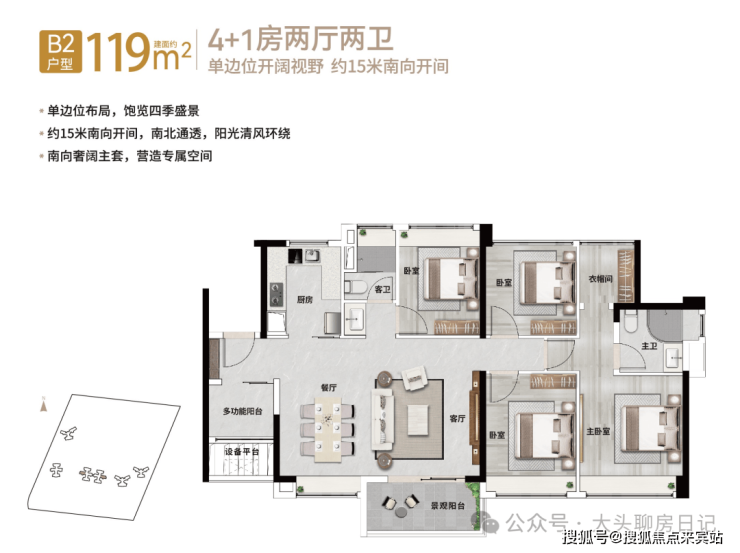 【119㎡4+1房2厅2卫(带主套)】总价650-750万