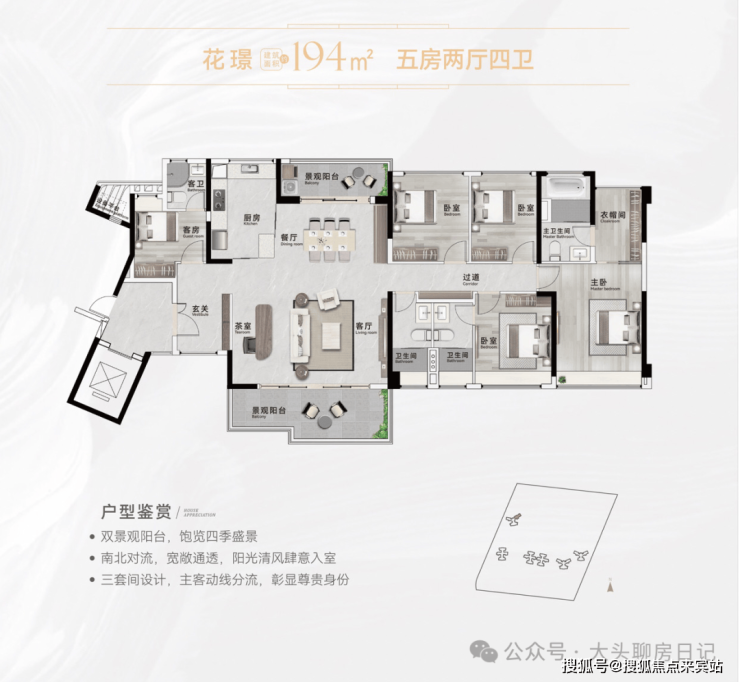 【194㎡五房2厅4卫(三套房)】总价1200-1400万