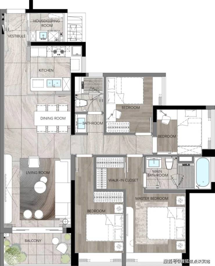 140㎡四房:提供横厅和竖厅两种布局选择。横厅设计三面采光,约18米的采光面;竖厅设计则更加注重私密性。