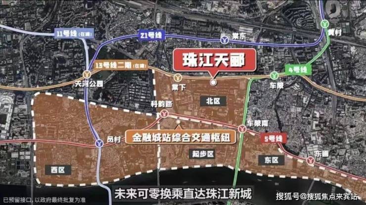 随着2025年金融城配套的加速兑现,区域价值正在快速提升。项目与珠江新城、琶洲两大核心商圈形成鼎足之势,共享万亿级配套资源。金融城西邻珠江新城、东接黄埔鱼珠片区,北引天河智慧城、南望琶洲核心区,地处广深港澳科技创新走廊、广州沿江经济带、科技创新轴的交汇点,被誉为广州的"黄金十字路口"。