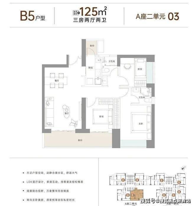 B5户型125㎡3房2厅2卫↓