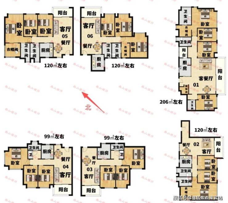 润府四期即润玺一期,2020年底开盘、2022年底入伙,共4栋楼及一所幼儿园,目前还属于限售状态,只能租不能卖。1栋总高62层、2栋总高60层、3栋总高57层,1-3栋都是5梯6户,4栋总高42层、3梯5户。润府四期主要的户型是99㎡3房、120㎡4房、175㎡4房、190㎡4房,总住户约1274户