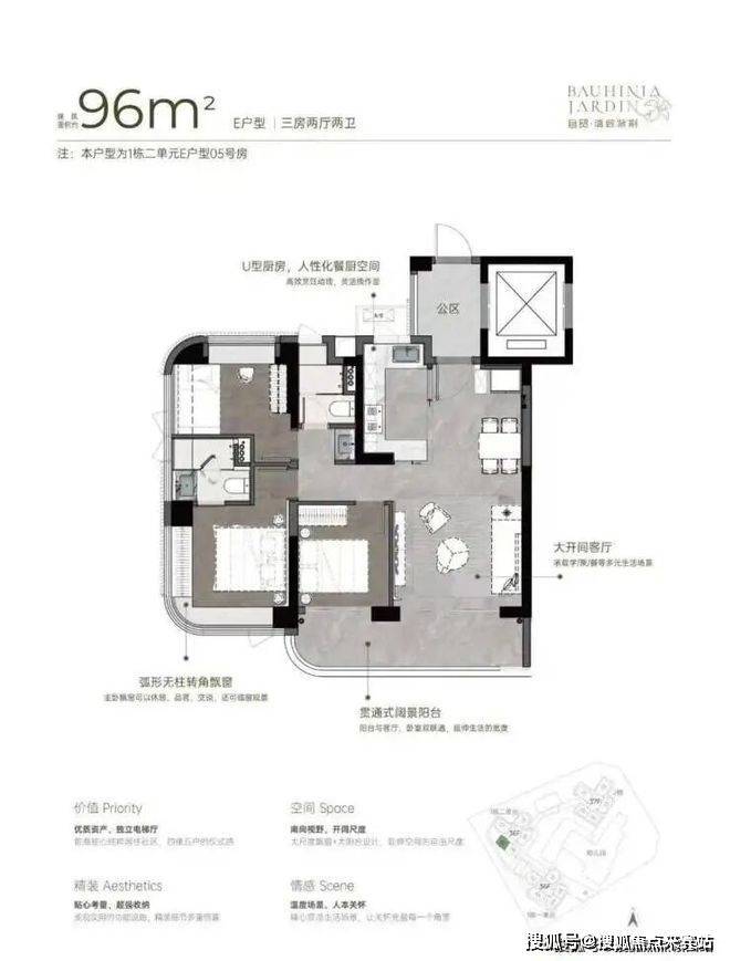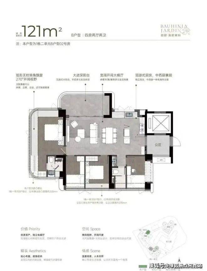 • 270°弧形无柱大尺度飘窗、大宽厅、大阳台,带来更多使用空间。