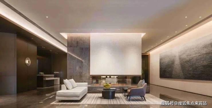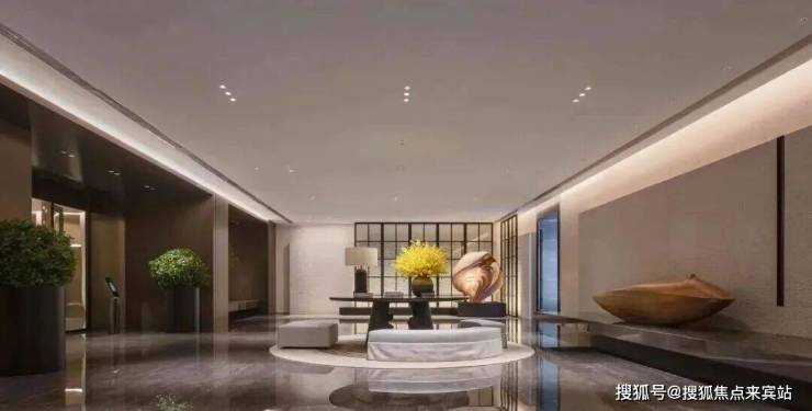 顶奢酒店式入户大堂,石材铺装,打造尊崇的三重归家礼序,开敞阔绰奢豪,点缀多元艺术美陈。