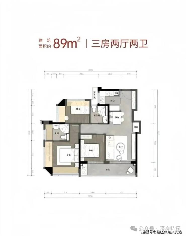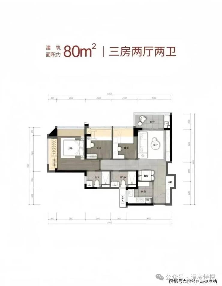 户型:建面约80-110㎡三到四房两卫