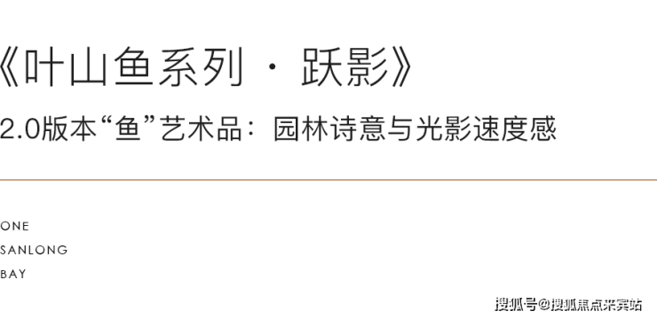 《叶山鱼系列——跃影》作为鱼系列创作2.0版本首次亮相于三龙湾1号营销中心。“鱼“”系列艺术品是鹏瑞顶豪匹配的象征,多年来一直沿用于鹏瑞大湾区的顶级豪宅项目之中。此次升级的2.0版本,历时大半年的潜心创作,只为了呈现更具现代审美和在地文化的全新视觉感受。