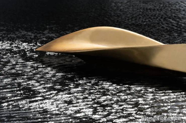 跟鱼雕作品表面处理一样,作品侧面处理同样以真金箔工艺匠心打造,使整个展示中心有了延续的视觉感受。《风生水起 · 昇》不仅是传统文化的创新表达,也寓意着三龙湾高端创新集聚区将以科技“金”力量,向上引领未来大湾区的新时代。