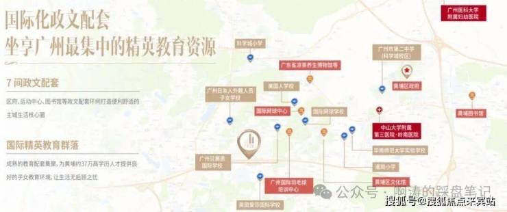 教育——项目3公里范围内集聚市二中、爱莎国际学校、贝赛思国际学校、华南师范大学附属黄埔实验学校(南校区)、美国人学校等多所国际院校,营造双语教学环境,培育与国际接轨的菁英人才;