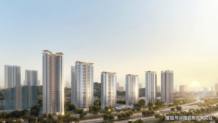 在大师团队的妙笔下,整个项目规划建设7栋塔楼、8栋板楼、15栋叠墅,高层围绕南面的黑白面将军山和南屏水库形成为围合之势,将面宽1000m的湖景和5000m的山景资源最大化,实现建筑与外部环境的融合协调。