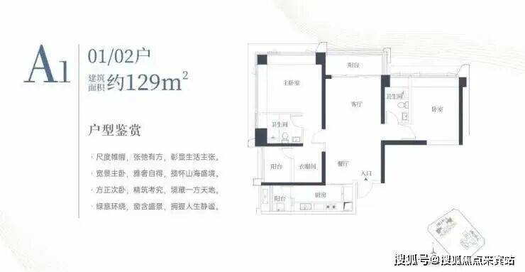 1栋一单元A1、A2户型:面积约为129㎡