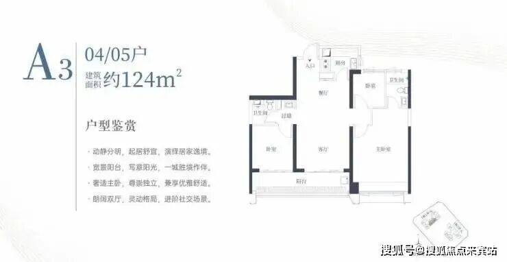 1栋一单元A3户型:面积约为124㎡