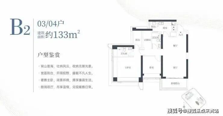 1栋二单元B2户型:面积约为133㎡
