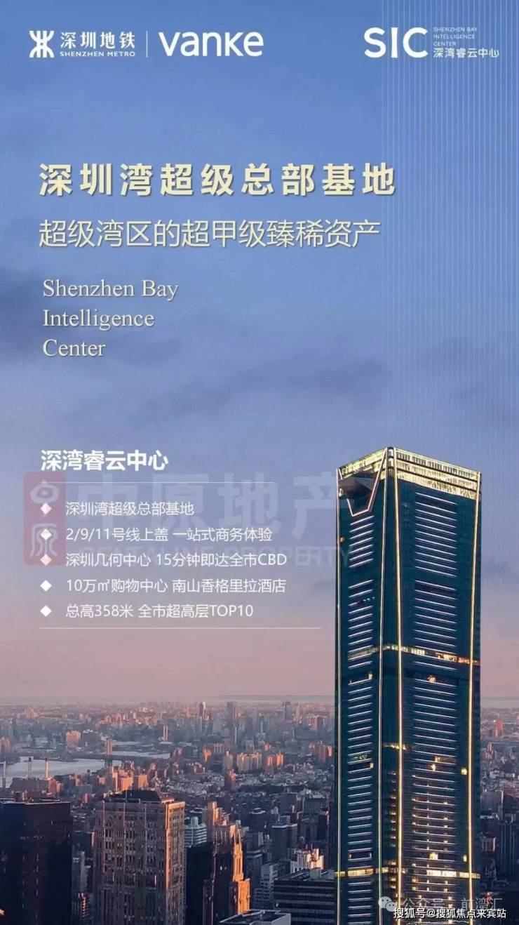 深湾睿云中心位于深圳定位最高、十四五规划重点发展区域、南山区产业能级最高的土地之一——深圳湾超级总部基地,是该片区的首发TOD垂直综合体项目,由万科集团和深圳地铁集团联袂打造。其超高层屋顶是俯瞰城市“第六立面”的优质观景点,除具备四面俯瞰功能,兼具公共性、开放性、体验性。