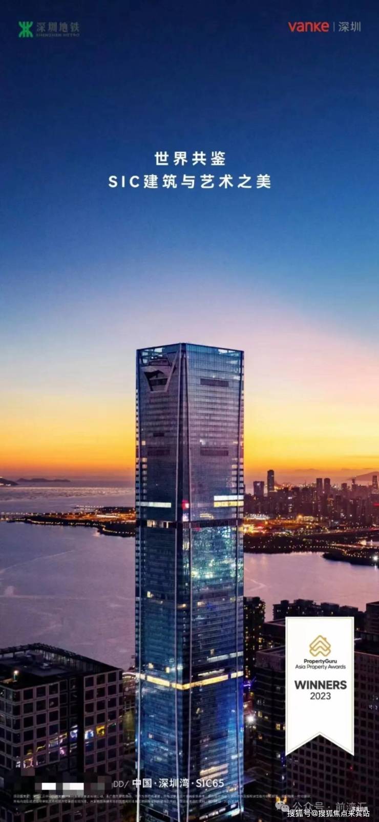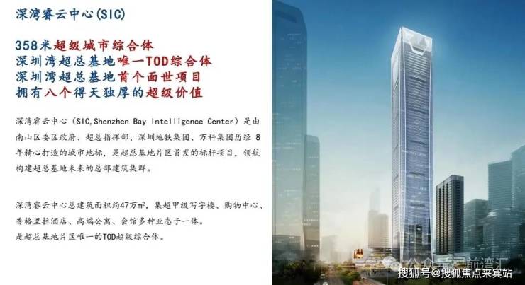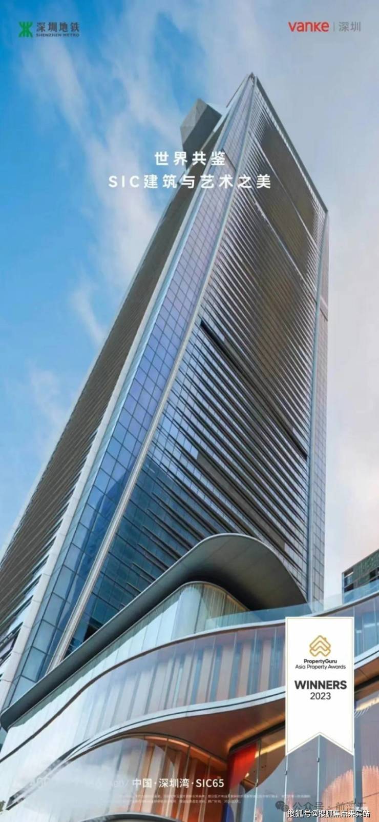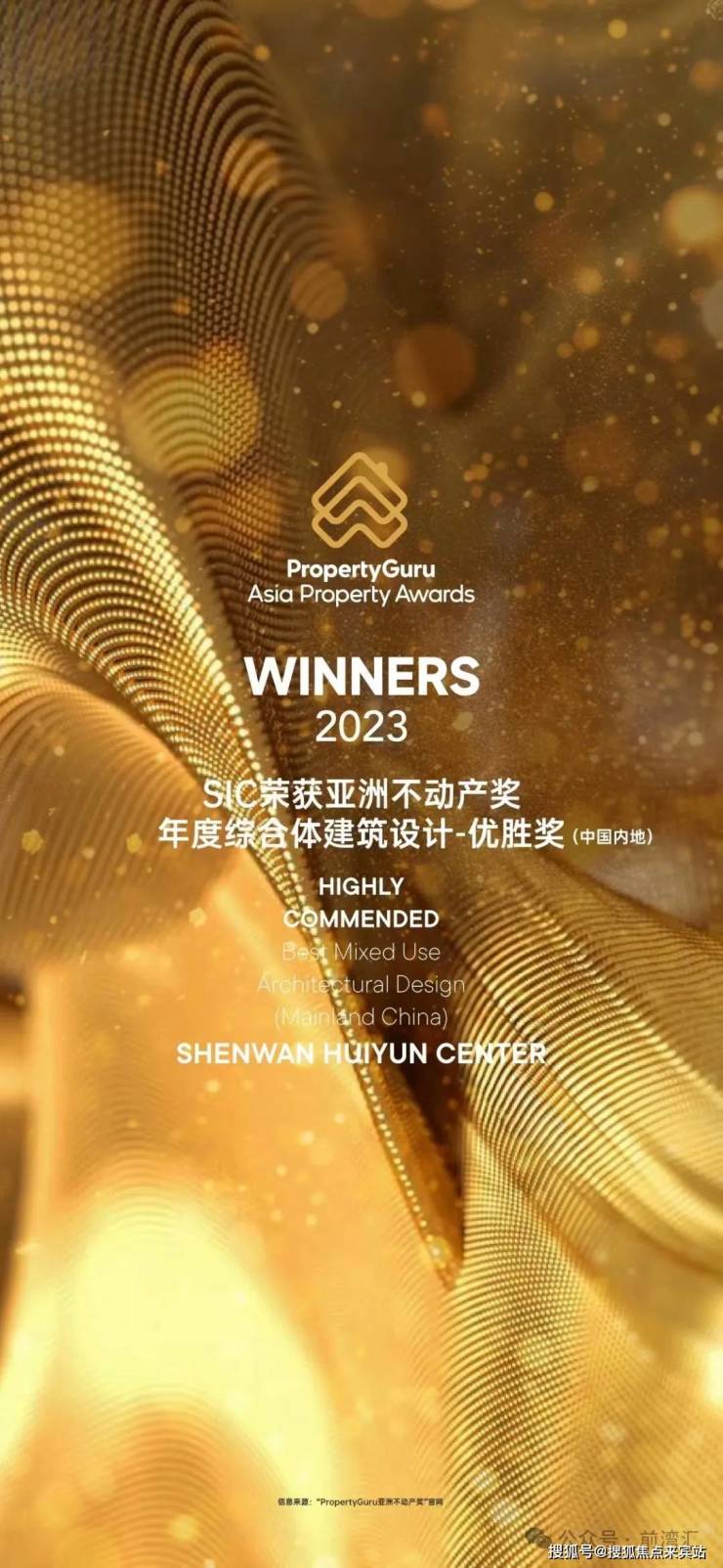 深圳湾超级总部基地首个超高层项目——深湾汇云中心(SIC)于2023年正式交付后成功斩获亚洲不动产最佳综合体奖及法国双面神大奖。