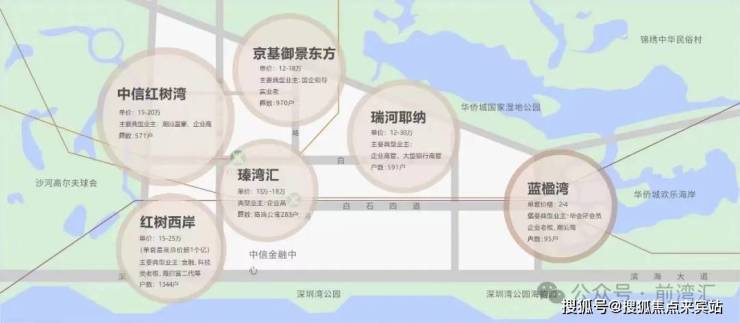与世界强者为邻:实业总部云集,目前入驻及在建总部企业包括中国电子、OPPO、京东、招商银行、中信证券、深湾发展/深投控等16家500强总部及创新龙头企业等,将打造为彰显深圳城市地位和全球形象的新名片