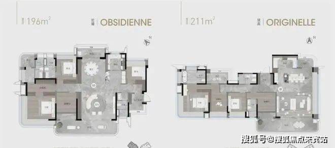 196㎡、211㎡户型,拥有南北对流、LDKB大方厅、双主套、主卧L型270°飘窗等众多优点,大大提升了整体的空间体验。