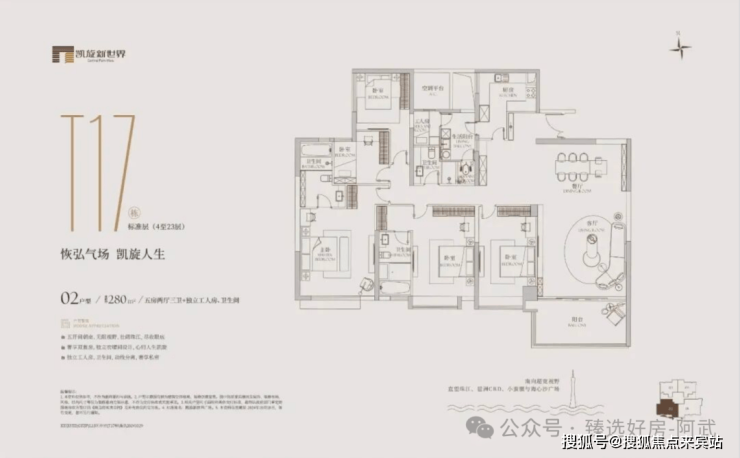 280㎡ 五房两厅三卫+独立工人房、卫生间