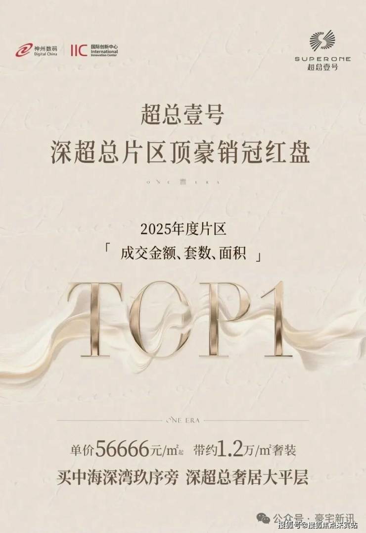 超总壹号是集总部办公、总裁会馆、云端会客厅、商业于一体的生态综合体, 位于深圳湾超级总部基地。该项目由神州数码集团打造,不仅将自身在AI、云计算、生态合 作等领域的优势注入其中,还特邀国际化物管专家仲量联行担任物业顾问,引入纯正英式贵 族服务。项目总建筑面积约25万㎡,建筑高度约200米,拥有优越的生态环境。