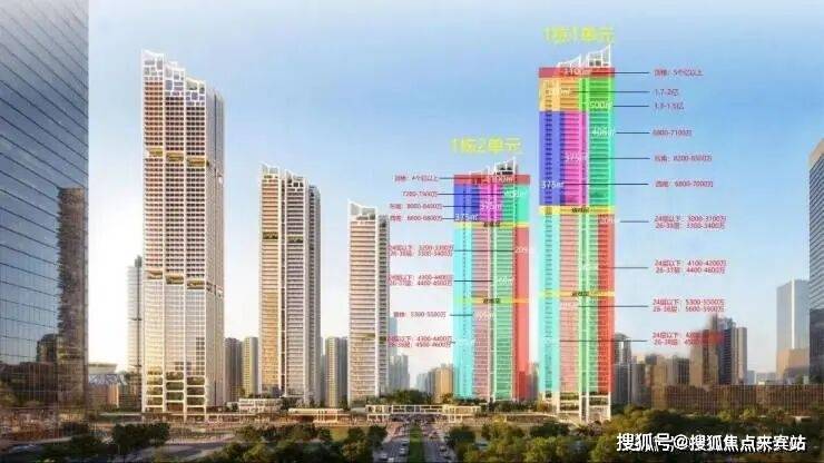 1号楼26-38楼3300万-3400万,单价约15.7/㎡-16.2/㎡