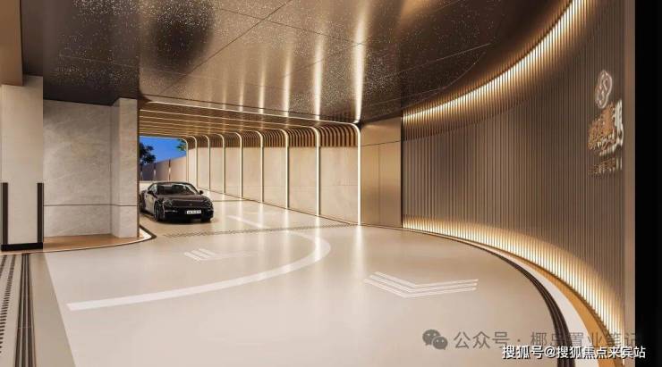 以精装房标准打造车库,全面精装修将品质与尊崇雕琢极致,流线型环状灯带打造时空隧道般的归家体验,璀璨星空穹顶,金属格栅全吊顶,将管道线全部隐藏,更显大气,独特的门廊设计让您的私家车入户,更彰显私密与尊贵。