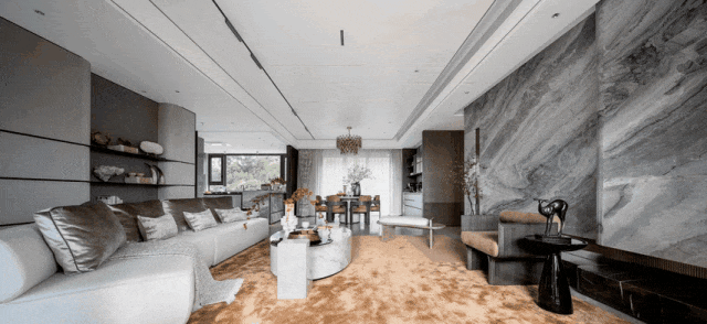 其中客厅开间约7.5米,整个 餐客厅空间面积约达73平,家族团圆或宴请宾客时更能感受家主的宽广格局与气度;
