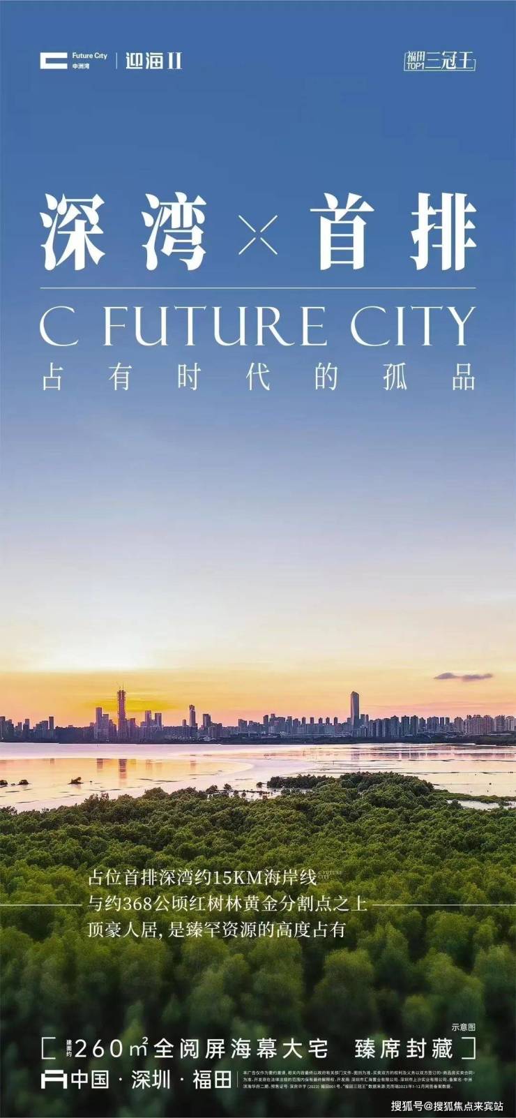 市中心黄金海岸线最后完善开发板块,唯一的中心与海双重占有的豪宅,享永久无遮挡开阔海景、368公顷红树林国家自然保护区、15公里的深圳湾滨海长廊、隔海对望1500公顷香港米埔湿地公园。