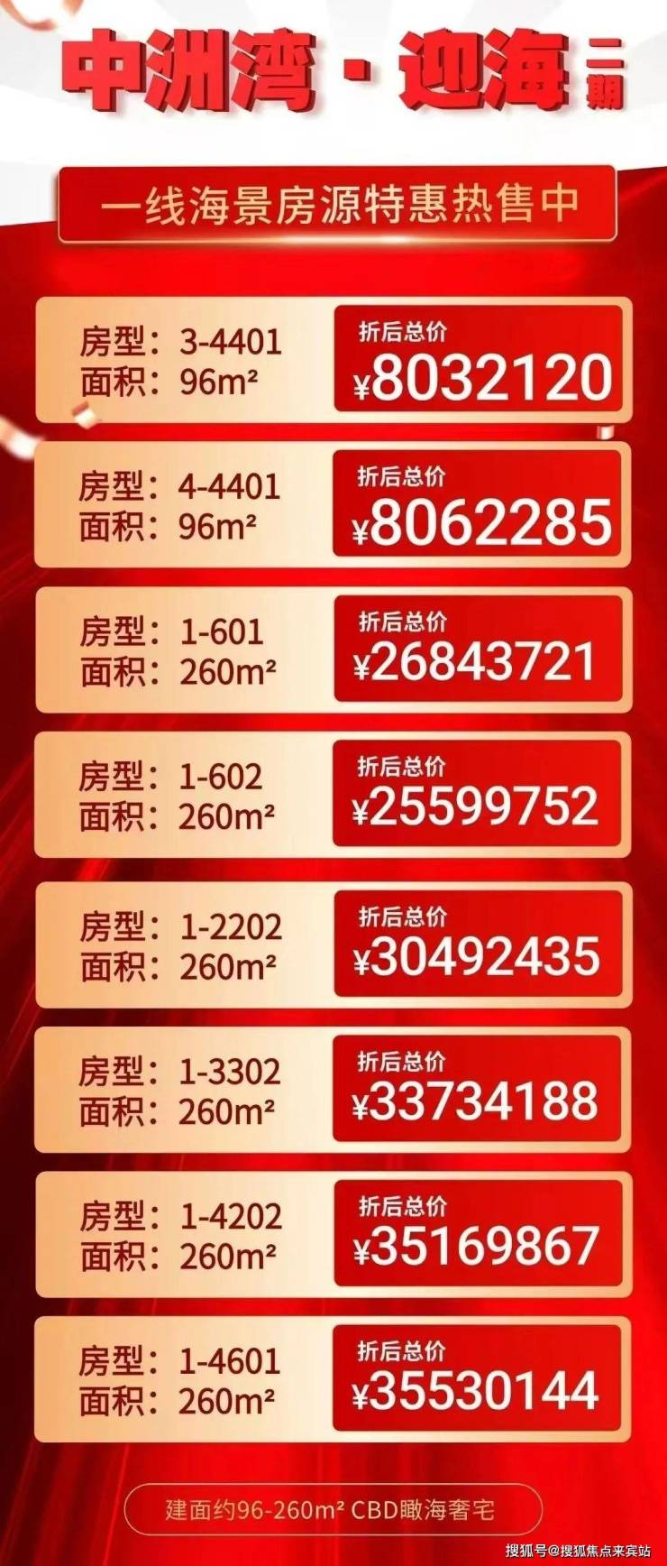 中洲湾迎海二期本次推出的户型有96㎡(三房一卫)、109㎡(三房两卫)和125㎡(三房两卫),全部送精装修。最低总价七字头起,性价比超高!