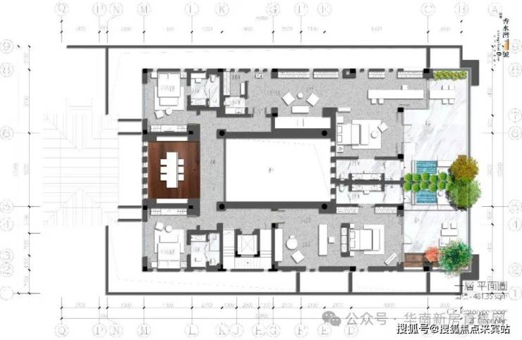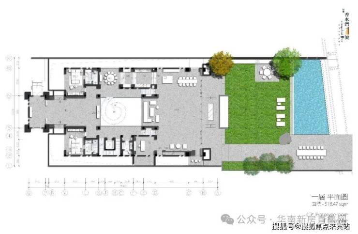 庭院西部双卧室对称而立,配套卫生间与室外淋浴间,尽赏超大泳池景观,起居室与餐厅、家庭室浑然一体,共赏中心庭院水木清华,四季芳菲愉悦身心。设保姆间、洗衣间、卫生间与中式厨房,主仆区域分明,大家风范可见一斑。
