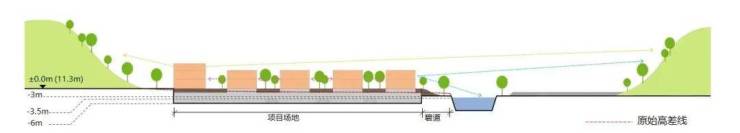 项目将整个场地统一抬升至11m,获得更好的景观视野与私密性。