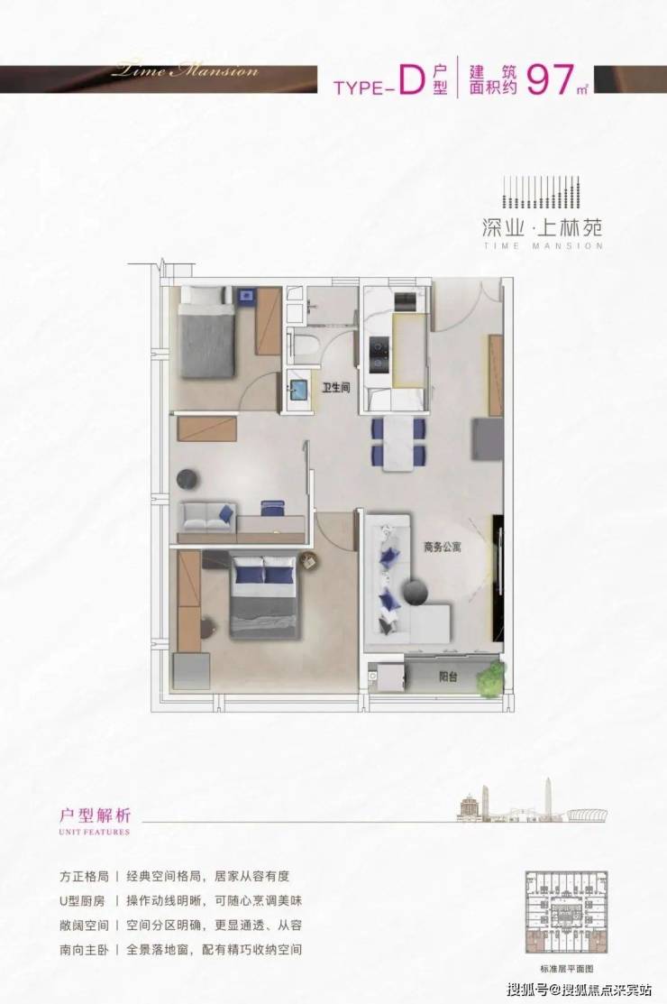 深业上林苑的主力户型为建面约40-97㎡的1-3房,且近八成为40-55㎡的小面积户型,户户皆配有阳台,既有适合年轻人居住或工作的小户型单房,也有适合家庭的套房,满足从一个人到一个家的住房需求。
