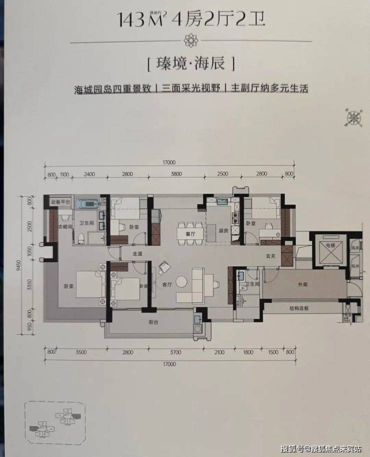 项目主打115-143㎡纯四房,采用4梯5户及专梯入户设计,空间利用率极高。
