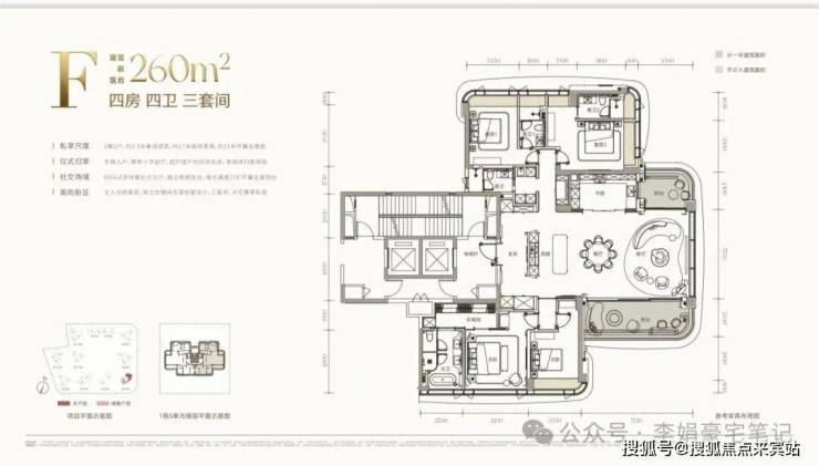 约260㎡(四房四卫三套间):项目“头牌”,全盘仅40套。采用创新的全景舱设计,拥有270°无遮挡环幕海景。专梯入户、十字前厅,仪式感与景观视野双双拉满。
