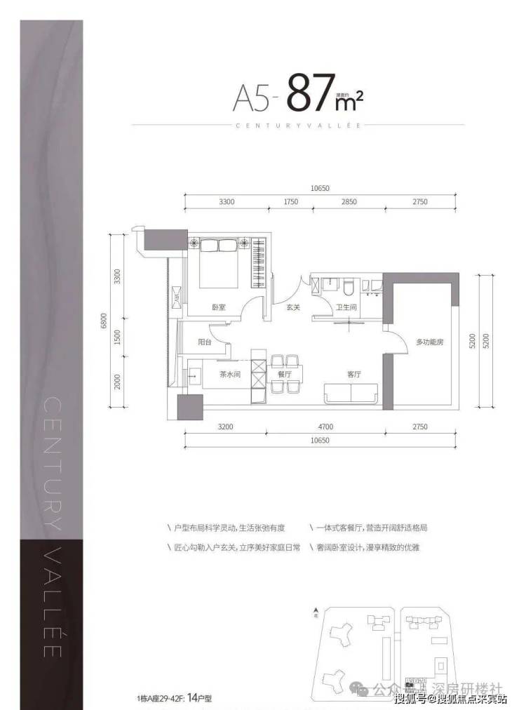 【产品】约67-87㎡1-2房,百米之上,天赋臻寓,70年产权,户户带阳台,拥有约3.3m超舒适层高,5梯14户,高定奢装,世纪山谷首发之作。