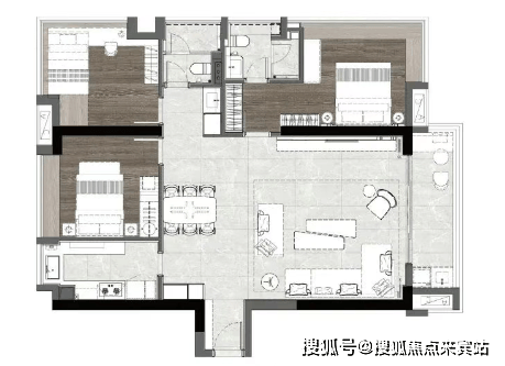 建面141㎡三房两厅两卫,约5.9m面宽、约47㎡宽境方厅,270°环幕,工型飘窗设计,坐拥巨幕视野。
