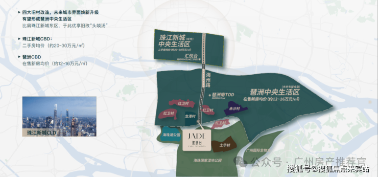 随着四大旧村改造,未来片区城市界面焕新升级,有望形成琶洲南部CLD(中央生活区)。