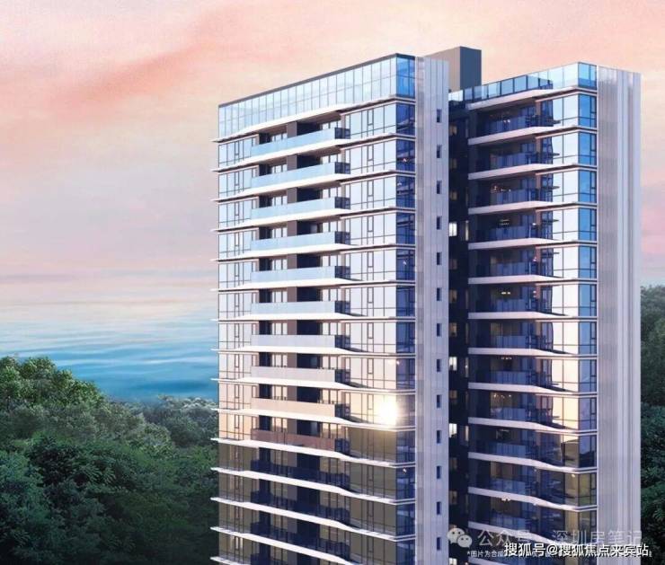 从小区规划来看,项目走的是现代豪宅路线。外立面采用水晶灰蓝玻璃+全铝板设计,这是深圳湾豪宅同款配置,颜值很能打。约100米的建筑高度,270°瞰海飘窗,把南向头排海景变成家的日常。