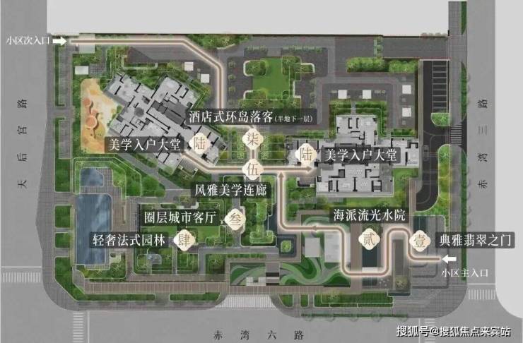 整个社区占地约1.36万㎡,总建面约5.88万㎡,容积率只有2.8,是赤湾片区最低的住宅项目之一。对比一下,旁边开云府容积率7.0,琅玥湾4.77,天健湾时代府的2.8低密度优势非常明显。
