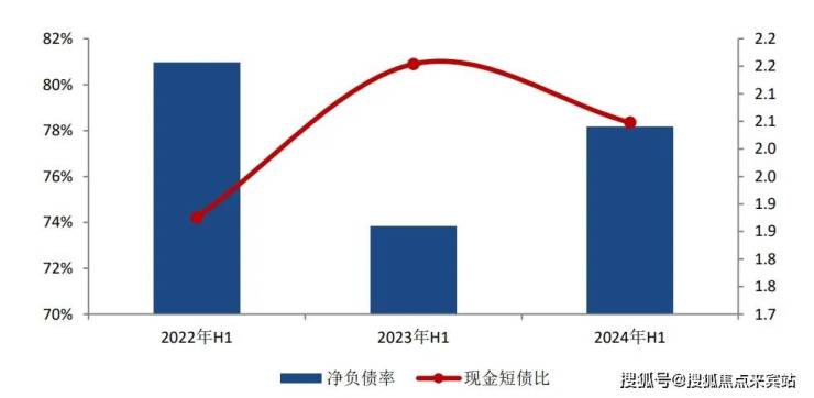 房企偿债压力仍在加大。根据上市房企2024半年报,截至2024年6月底,代表房企整体杠杆率有所上升,短期偿债能力有所下降。25家代表房企净负债率为78.2%,较去年同期上升4.3个百分点;现金短债比为2.0,较去年同期微降0.2个百分点。