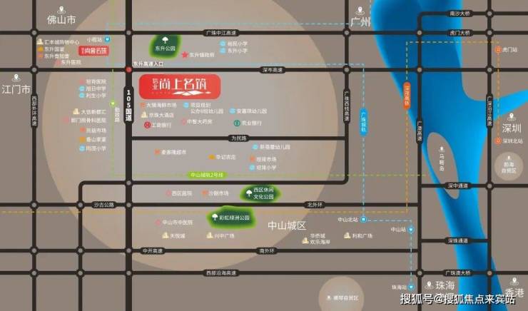 珠三角:30分钟向北即可沿广珠西线到达广州南,40分钟到广州天河;深中通道通车后45分钟即可达到深圳。向南沿珠三角环线及广澳高速1小时内就可珠海横琴、澳门等粤港澳大湾区主要城市及主城区。