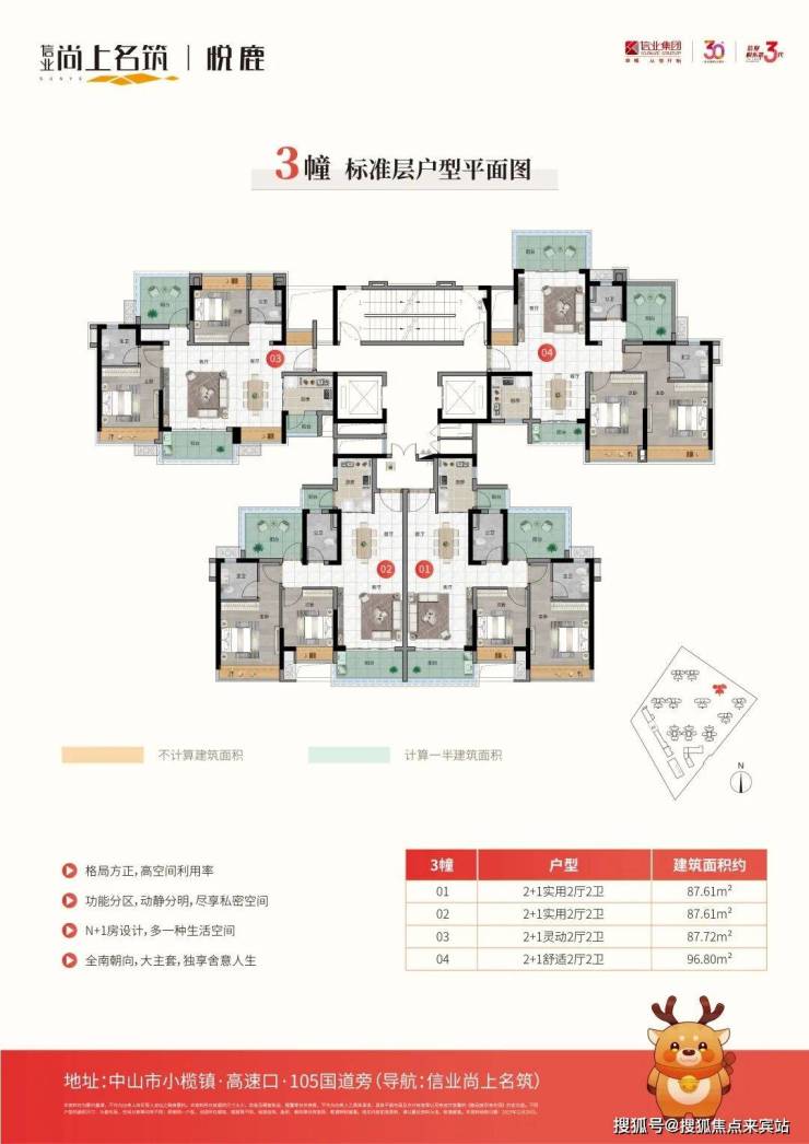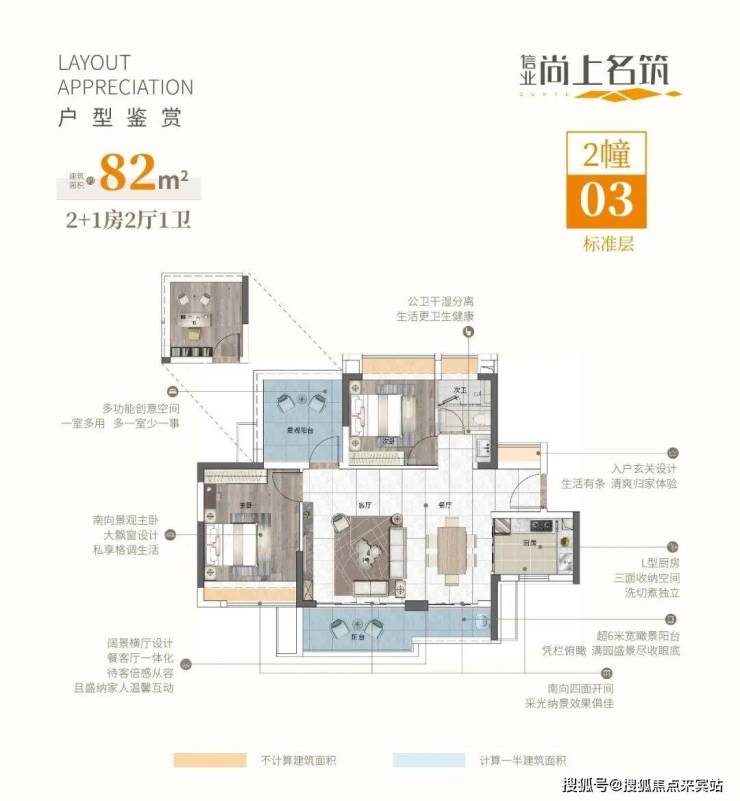 片区少有高实用率N+1灵动户型,建筑面积约82-97㎡三房。以南向景观主流设计,同时考虑各功能分区合理运用,实现户型高增送弹性实用空间与南向景观最大化。