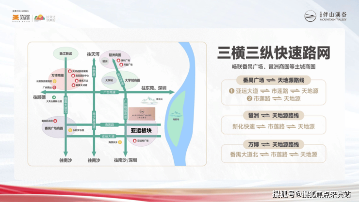 自驾——三横(亚运大道、市莲路、南大干线)、三纵(番禺大道-华南快速、广州绕城高速-新化快速、南沙港快速)等道路网多条,交通便利;