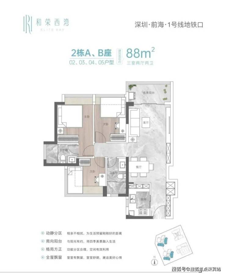 和荣西湾家园位于大前海西乡片区,直线距离约200米可至1号线固戍站地铁口,4站达宝中,6站达前海湾,3公里范围内5公园环绕,举步西湾红树林公园。项目容积率约2.88,产品为76-88-95㎡三房、100㎡四房,实用率约90%—96%,目前项目已是准现房,今年买今年住。
