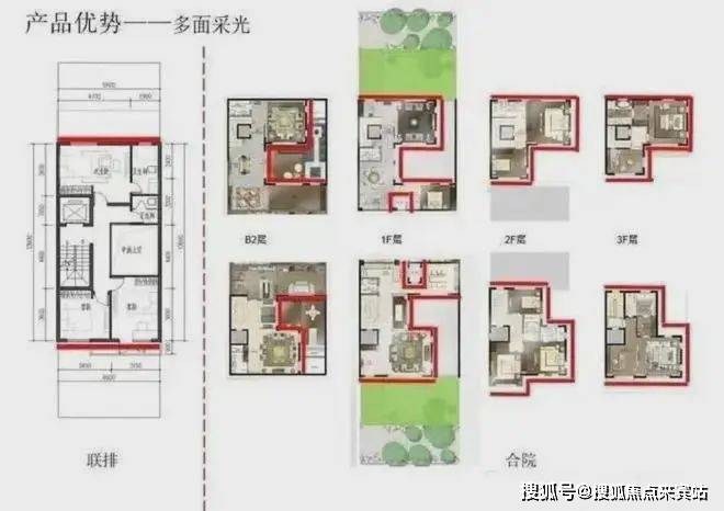 梯户比:联排别墅地上3-4层,地下3层